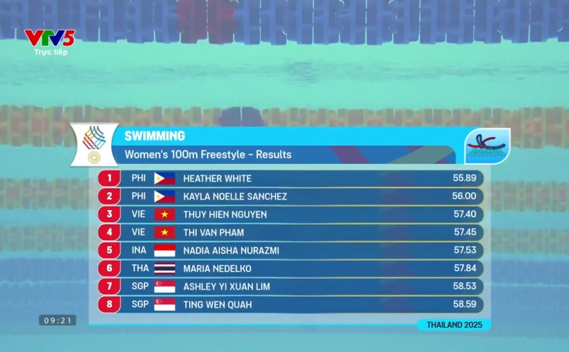 Ở nội dung vòng loại 100m tự do nữ, Phạm Thị Vân và Nguyễn Thuý Hiền về đích thứ hai và ba ở lượt bơi thứ ba. Cả hai đều giành quyền vào thi chung kết.