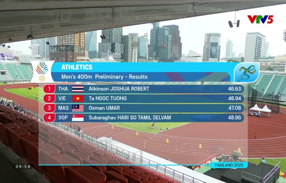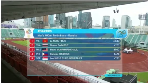 Ban tổ chức vừa công bố kết quả thi đấu ngày thứ nhất môn điền kinh SEA Games 33 và kết quả thành tích của "thần gió" Puripol Boonson khiến nhiều người giật mình.