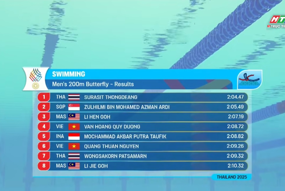 Ở nội dung bơi 200m bơi bướm nam, Nguyễn Quang Thuấn và Dương Văn Hoàng Quy đều giành quyền vào chung kết.