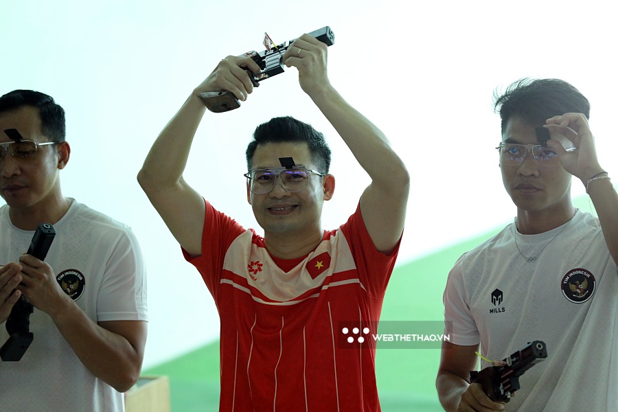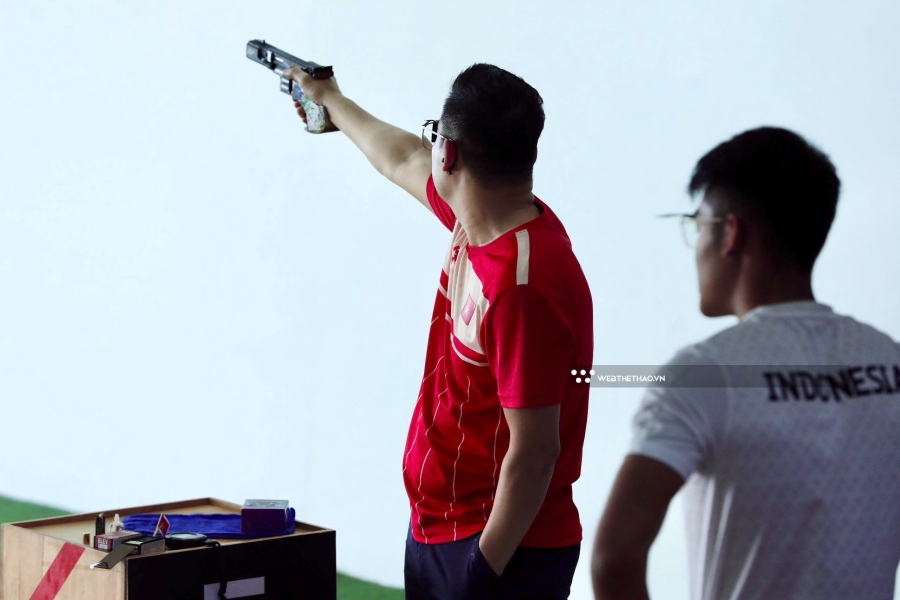 Hà Minh Thành cùng đàn em, nhà vô địch ASIAD Phạm Quang Huy bước vào phần thi chung kết cá nhân 25m súng ngắn bắn nhanh với 4 xạ thủ của Indonesia và Thái Lan cách đây ít phút. Và ở tuổi U40, thật khó tin khi Minh Thành trình diễn xuất sắc với phong độ đỉnh cao để mang về tấm HCV thứ 8 cùng kỷ lục cho bắn súng Việt Nam ở SEA Games 33.