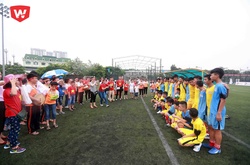 Hàng trăm CĐV không ngại nắng mưa, đường xa đến cổ vũ cho sáu đội bóng tranh tài tại vòng chung kết Festival bóng đá học đường U13 - 2017 vào sáng 27/6.