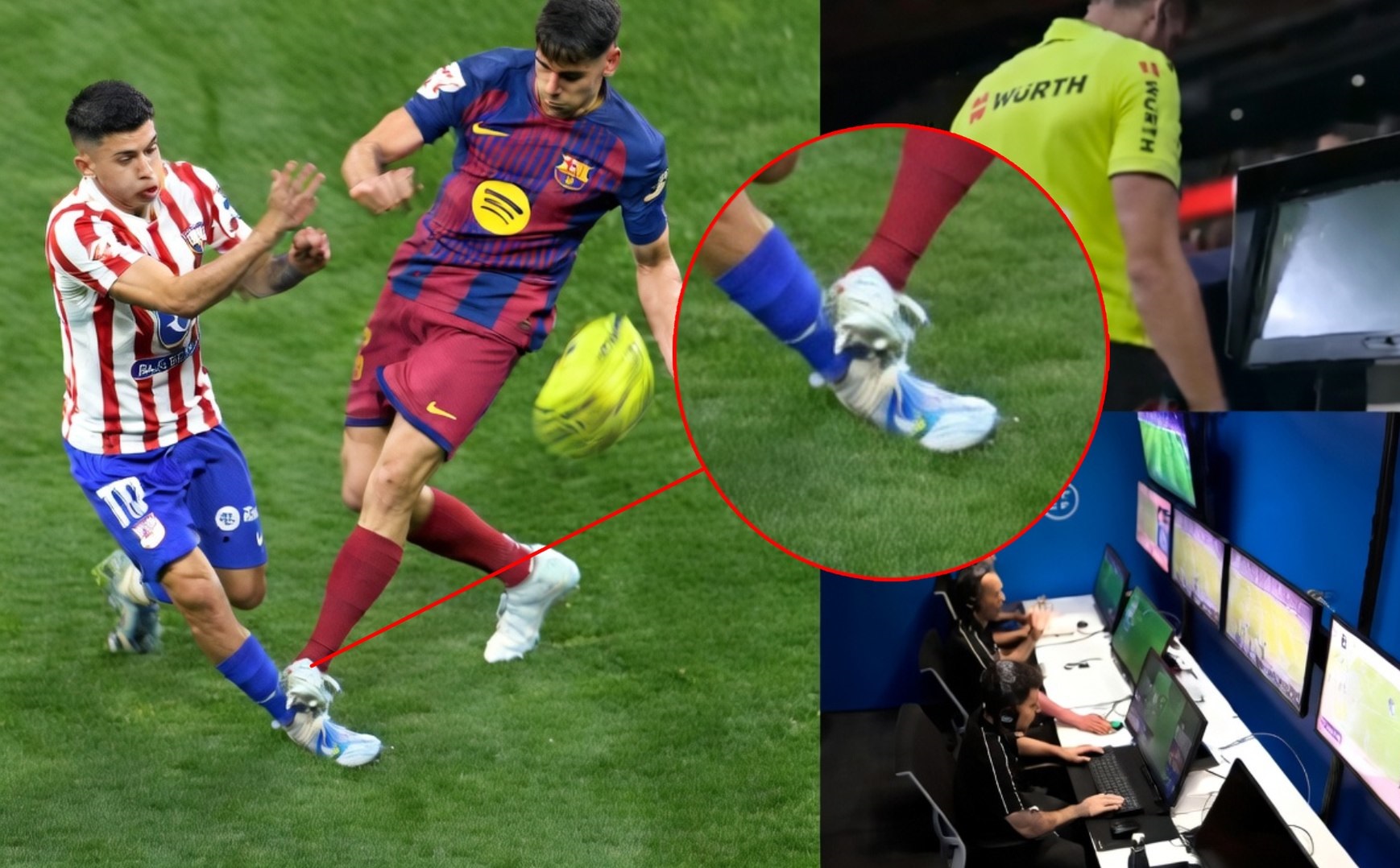 Cụ thể, trọng tài chính Busquets Ferrer ban đầu đã rút thẻ đỏ trực tiếp cho Gerard sau cú đạp rất mạnh vào cổ chân của Almada. Tuy nhiên, sau khi tham khảo VAR và trực tiếp xem lại màn hình, ông lại thay đổi quyết định thành thẻ vàng.