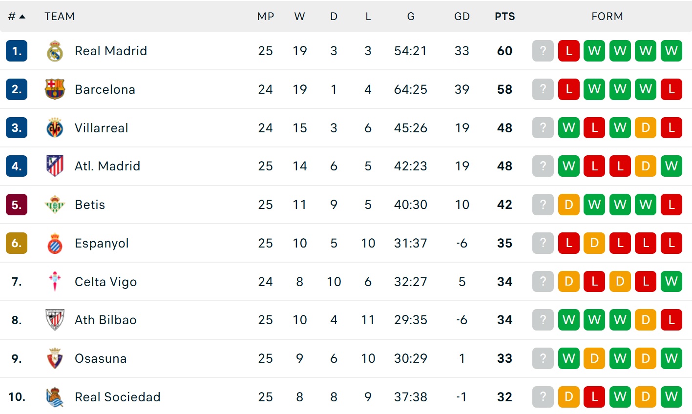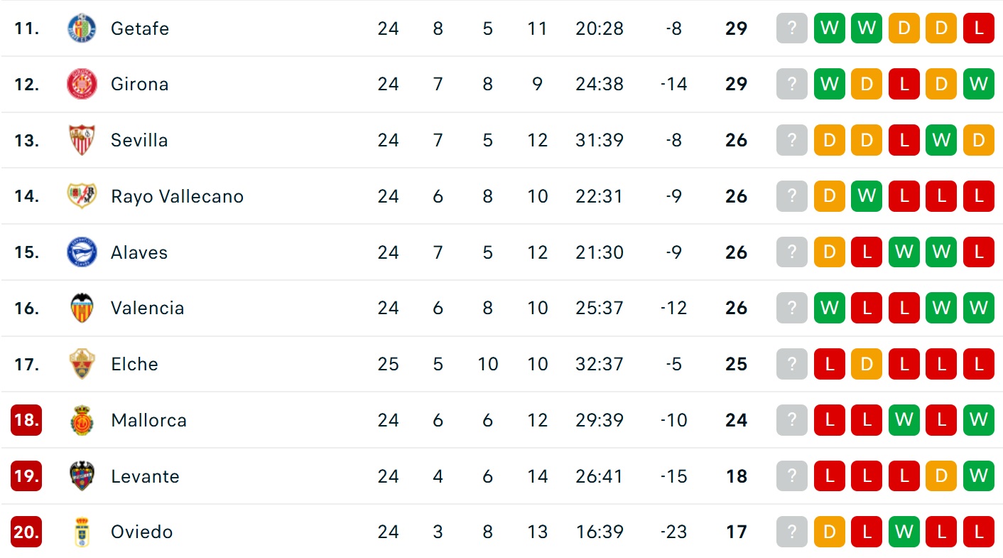Bảng xếp hạng La Liga