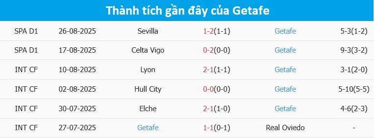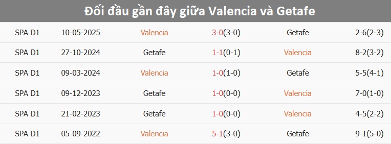 Tổng bàn thắng cả trận: 7/10 trận gần đây của Valencia dưới mốc tổng bàn thắng. Phía bên kia, Getafe chỉ lọt lưới 1 bàn trong 2 trận mới nhất.