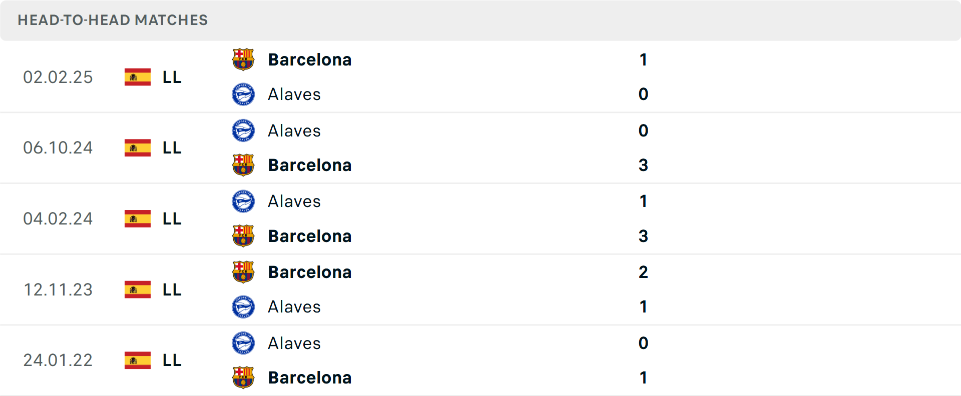Lịch sử đối đầu với Alaves hoàn toàn ủng hộ đội chủ sân Camp Nou khi Barcelona đã thắng 35/49 lần chạm trán trước đây và thắng 5 trận La Liga gần nhất.
