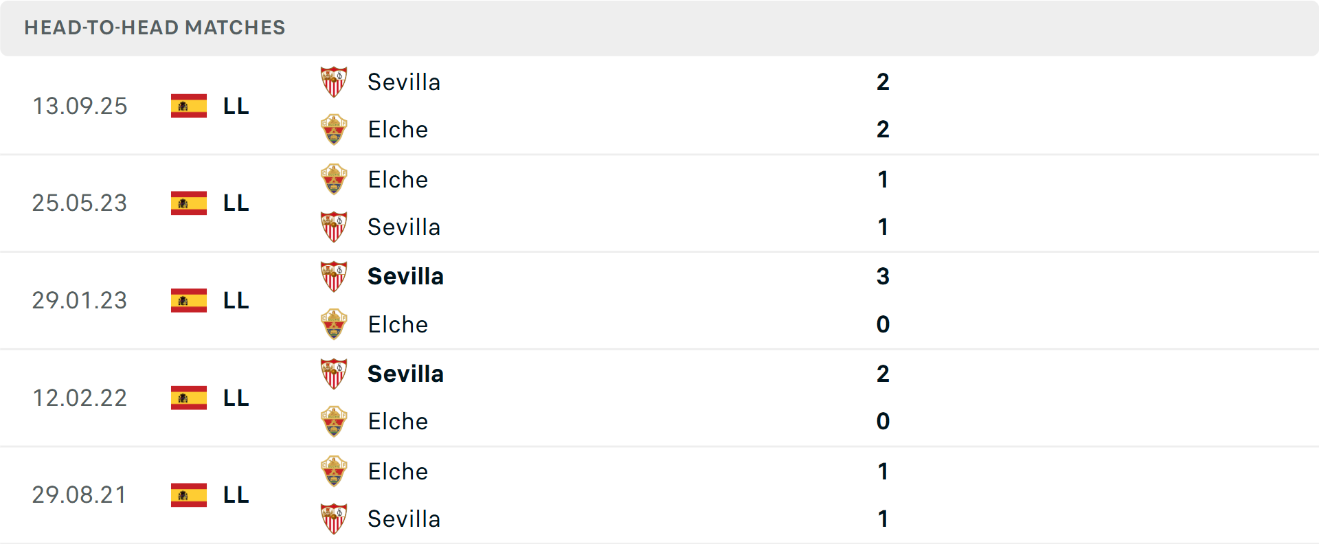 Tổng bàn thắng cả trận: 2/3 cuộc đối đầu mới nhất giữa hai đội vượt mốc tổng bàn thắng, tương tự là 5/7 trận gần đây của Elche. Phía bên kia, Sevilla lọt lưới 7 bàn ở 4 trận vừa qua.