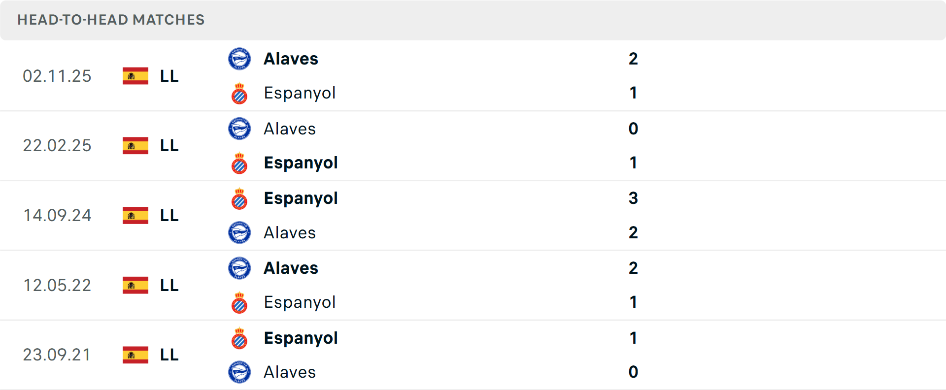 Tỷ lệ trận đấu: Espanyol thua 3/4 trận vừa qua theo tỷ số châu Á (1 hoà). Về phần mình, Alaves toàn thắng 3 trận mới nhất.