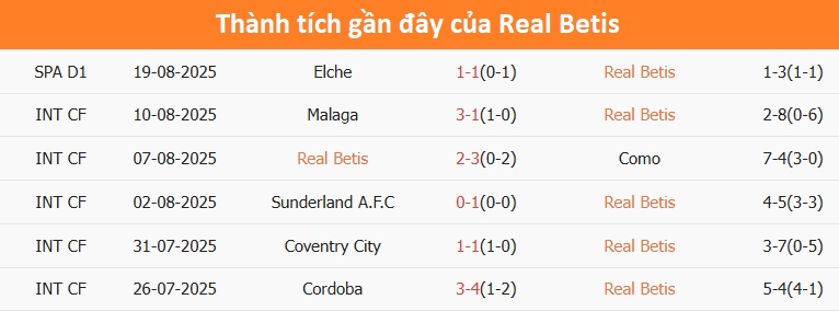 Tổng bàn thắng cả trận: 4/5 cuộc đối đầu trước đó giữa hai đội chỉ có tối đa 2 bàn. Tương tự, 3/5 trận vừa qua của Real Betis và 7/9 trận của Alaves dưới mốc tổng bàn thắng.