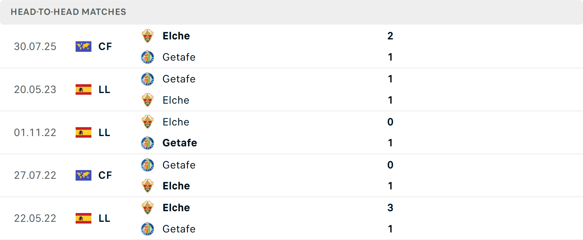 Tổng bàn thắng cả trận: Getafe lọt lưới cả 3 trận gần đây. Về phần mình, 2/3 trận mới nhất của Elche vượt mốc tổng bàn thắng.