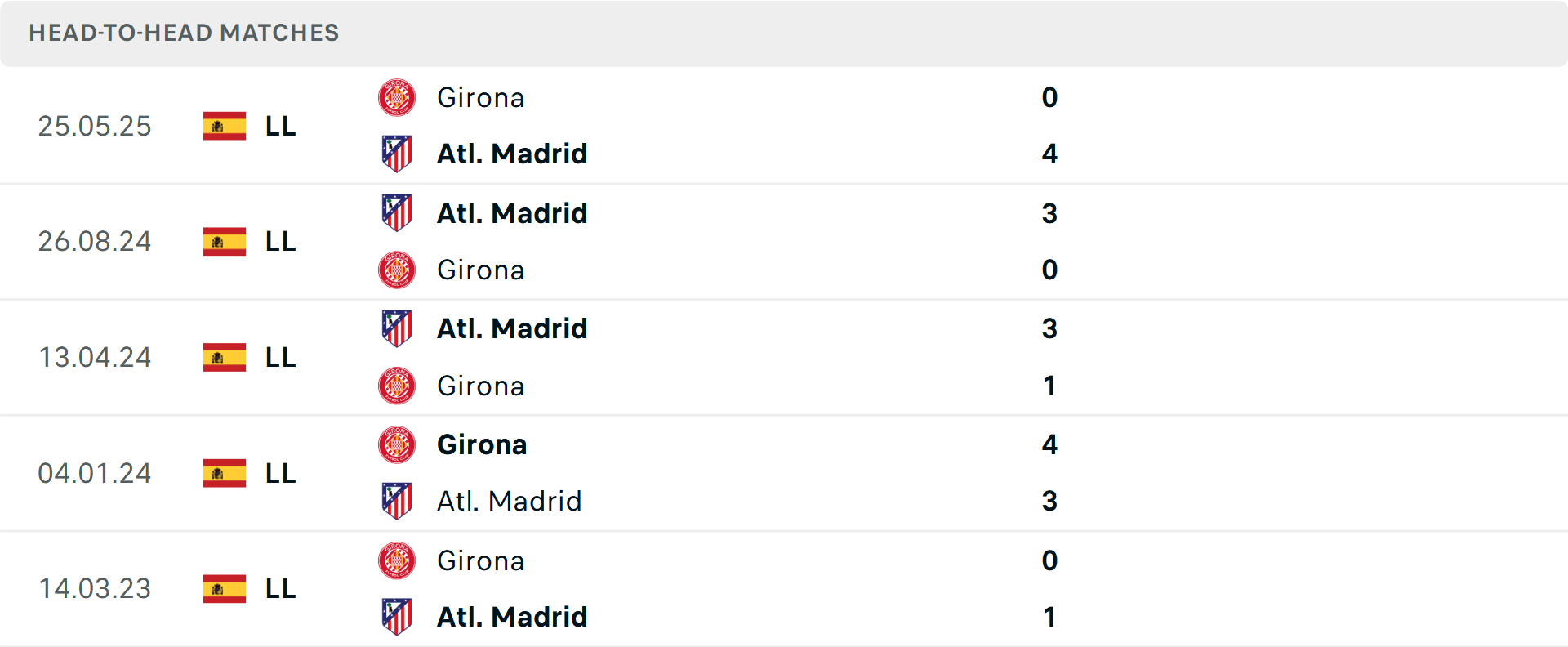 Trái ngược với đội chủ nhà, Atletico Madrid dù đang xếp thứ 4 nhưng lại vừa trải qua trận đấu tiêu tốn thể lực trước Baleares giữa tuần qua. Dù sở hữu thành tích đối đầu áp đảo trong quá khứ, đoàn quân của Diego Simeone thường gặp khó khăn khi đối đầu với lối chơi đầy quyết tâm của Girona tại Estadi Montilivi - nơi đội bóng xứ Catalan đã giành được 11/15 điểm mùa này.
