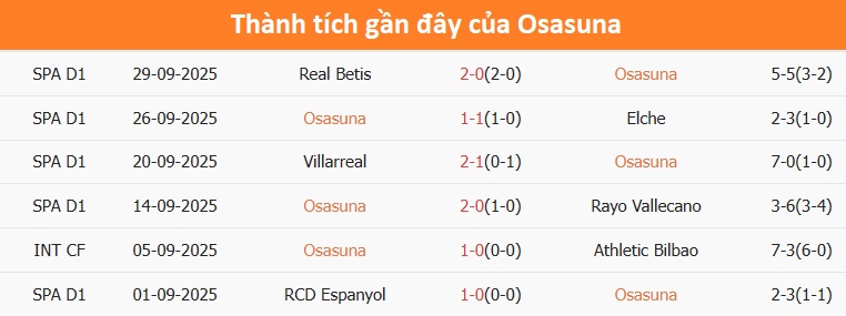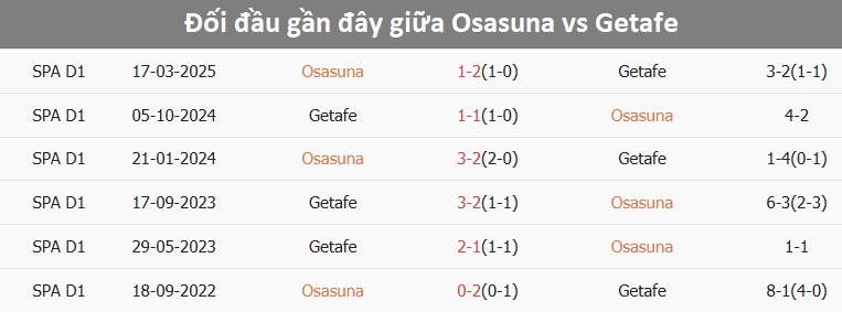 Tỷ lệ trận đấu: Osasuna thắng 5/6 trận sân nhà gần đây tại La Liga theo tỷ số châu Á. Về phần mình, Getafe toàn thua 3 trận mới nhất.