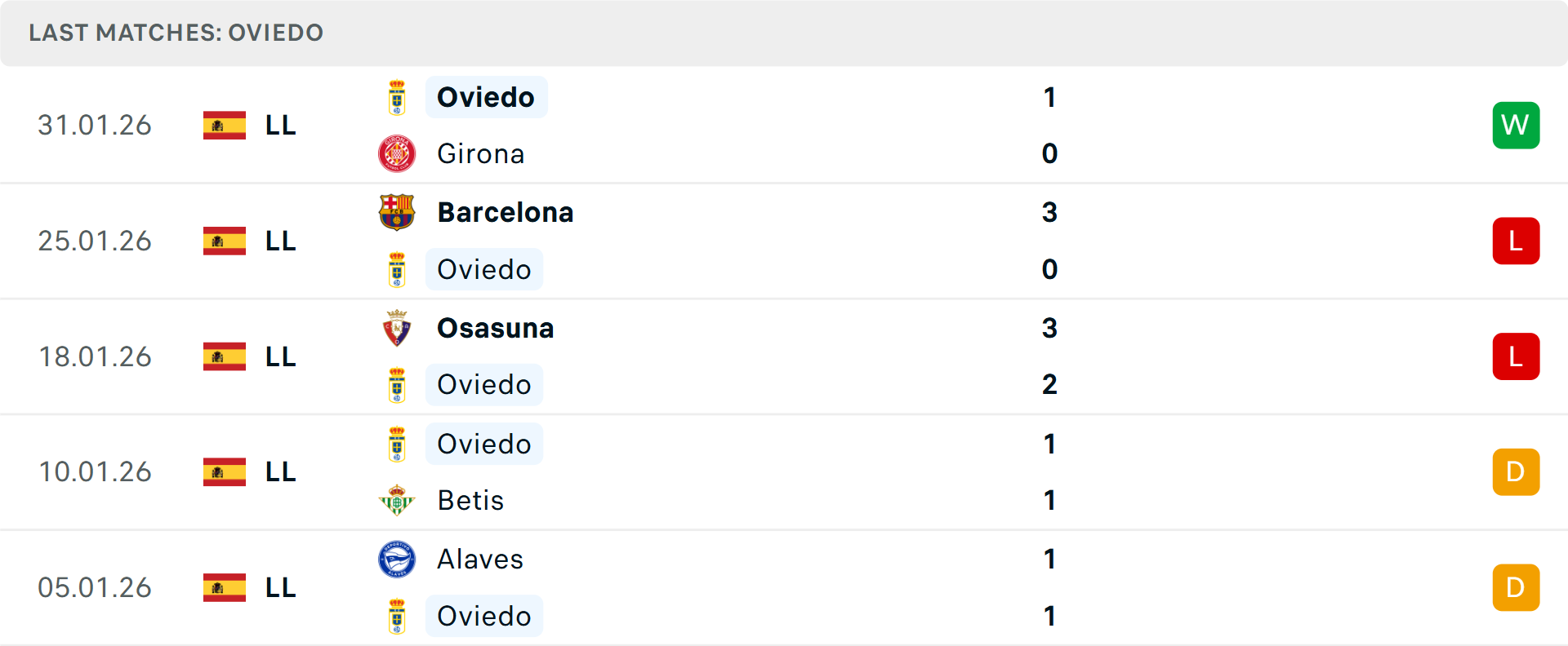 Phía bên kia, Oviedo hành quân đến Madrid với tâm thế phấn chấn sau chiến thắng 1-0 đầy bất ngờ trước Girona. Dưới sự dẫn dắt của HLV Guillermo Almada, "The Blues" đang nỗ lực thoát khỏi vị trí đáy bảng. Tuy nhiên, bài toán hàng công vẫn rất nan giải khi họ mới ghi được 12 bàn sau 22 trận. Với tính chất quan trọng của cuộc đua trụ hạng và thói quen chia điểm trên sân nhà của Rayo, một kết quả hòa là kịch bản rất dễ xảy ra.
