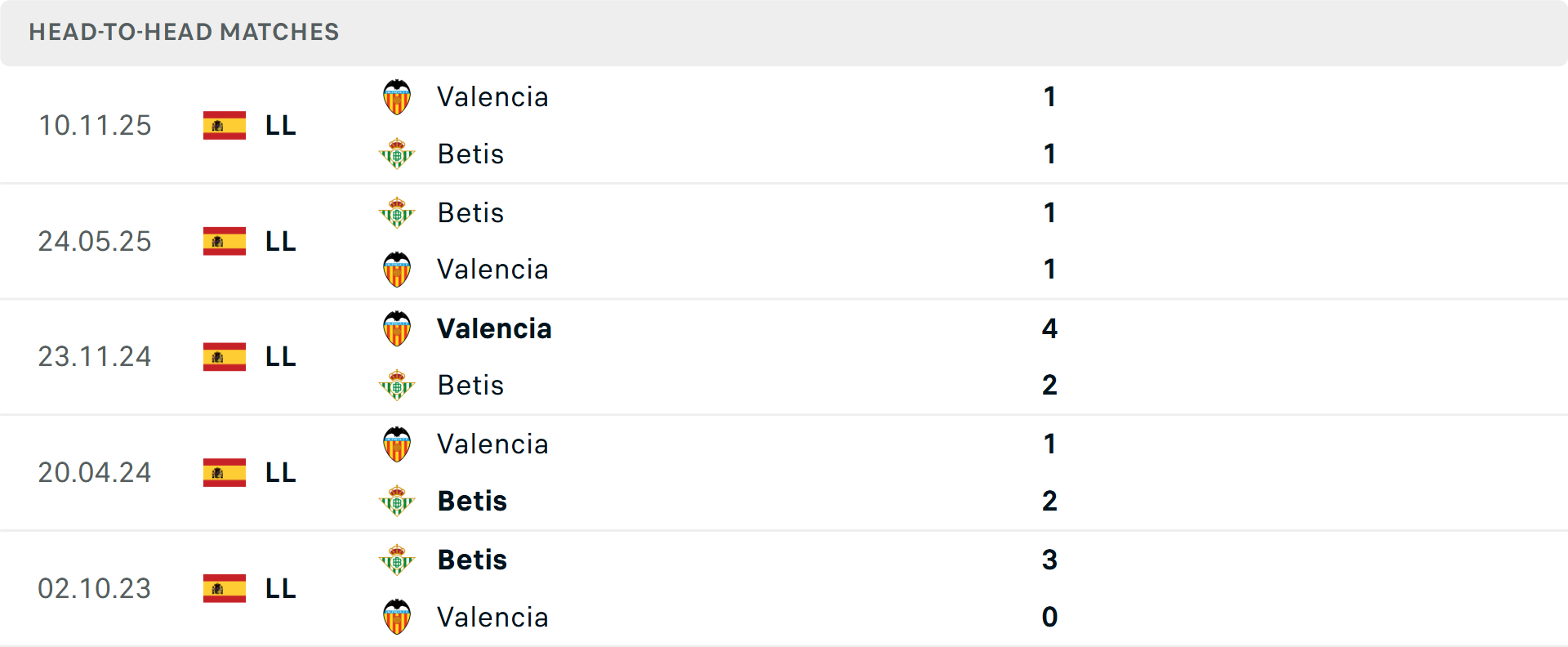 Tổng bàn thắng cả trận: 6/10 cuộc đối đầu trước đó giữa hai đội vượt mốc tổng bàn thắng, tương tự là 2 trận vừa qua của Real Betis và trận mới nhất của Valencia.