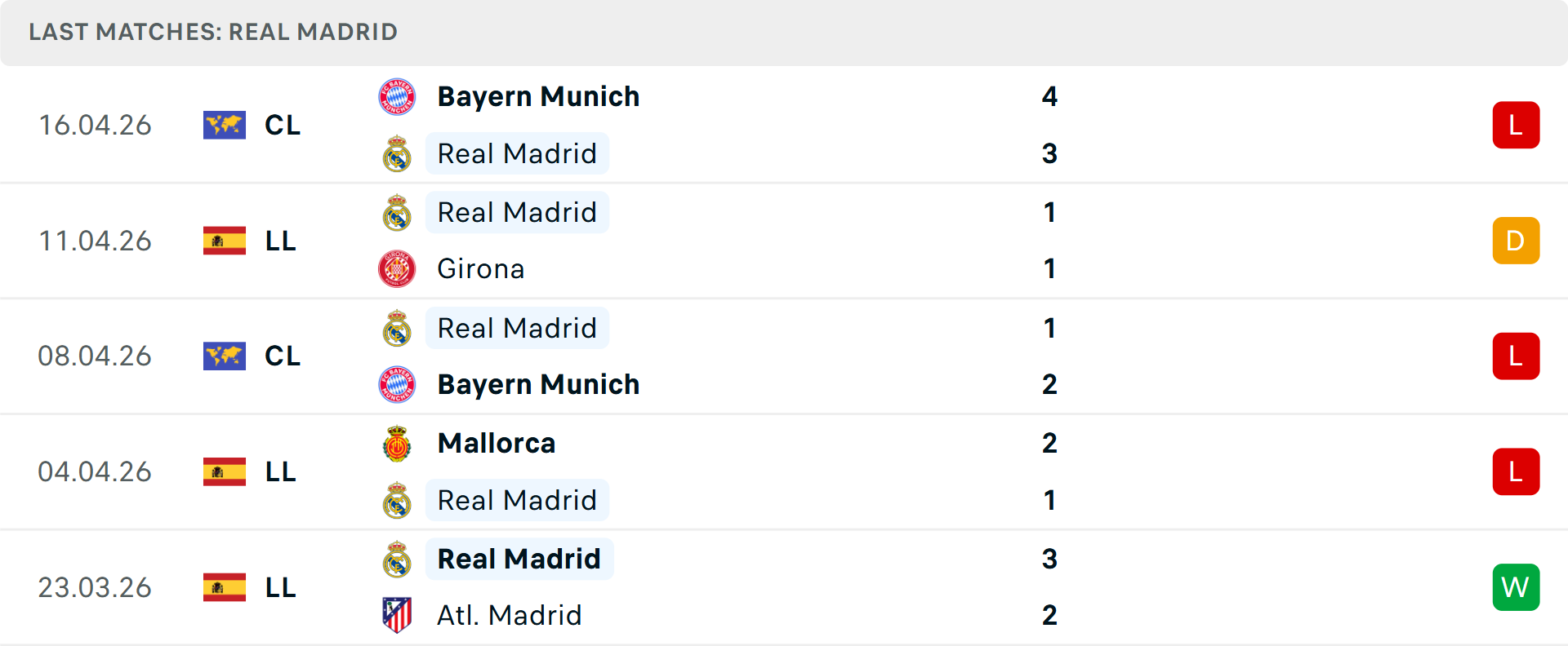 Real Madrid bước vào vòng 33 La Liga trong bối cảnh tâm lý nặng nề sau chuỗi 4 trận không thắng và vừa bị Bayern Munich loại khỏi Champions League. Với việc kém Barcelona 9 điểm, hy vọng bảo vệ ngôi vương của thầy trò Alvaro Arbeloa gần như đã khép lại, khiến đội bóng hoàng gia đối mặt kịch bản trắng tay mùa này.