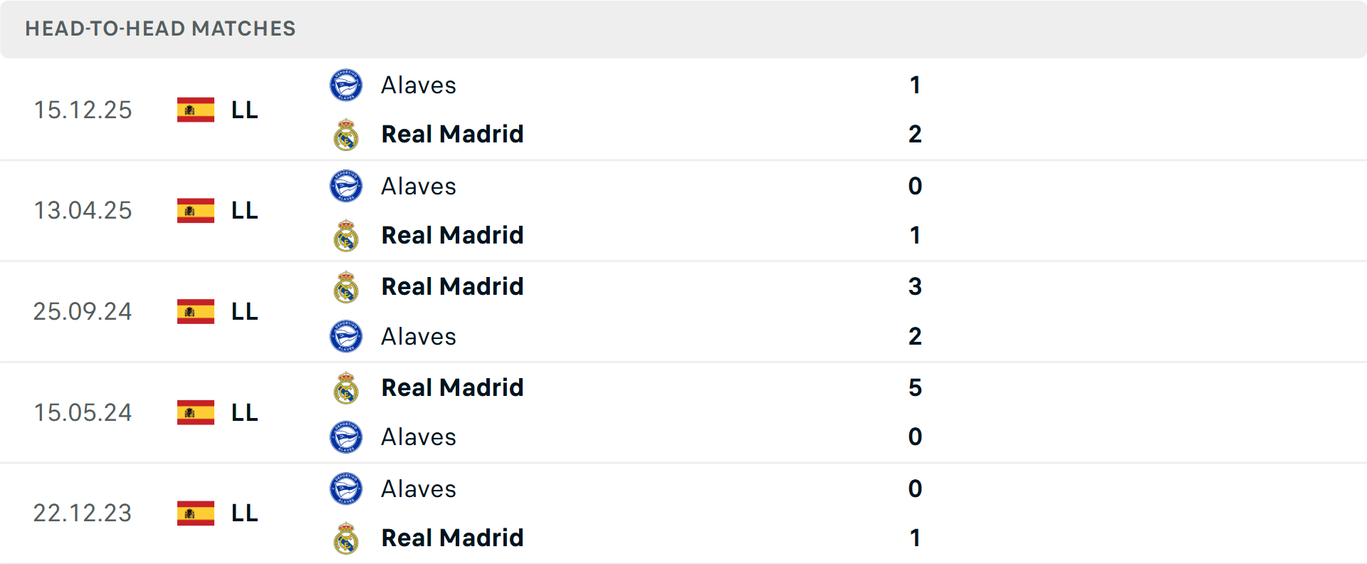 Tuy nhiên, tiếp đón Alaves tại Bernabeu là cơ hội để Real Madrid lấy lại danh dự khi đang sở hữu chuỗi 8 trận thắng liên tiếp trước đối thủ này. Dù Alaves dưới thời Quique Sanchez Flores chơi rất cống hiến với những màn rượt đuổi tỷ số kịch tính, nhưng hàng thủ của đội khách lại đang báo động khi để thủng lưới 3 bàn mỗi trận trong 3 chuyến làm khách gần nhất.