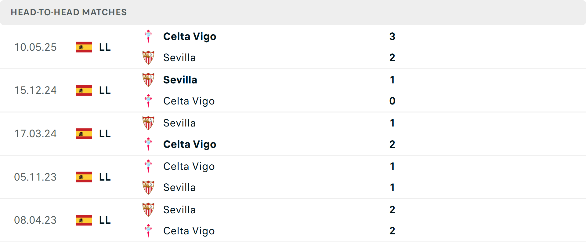 Tỷ lệ trận đấu: Sevilla thua Celta Vigo 2/3 cuộc đối đầu mới nhất theo tỷ số châu Á. Sevilla cũng thua 5/8 trận gần đây. Về phần mình, Celta Vigo thắng 3/4 trận vừa qua tại La Liga.