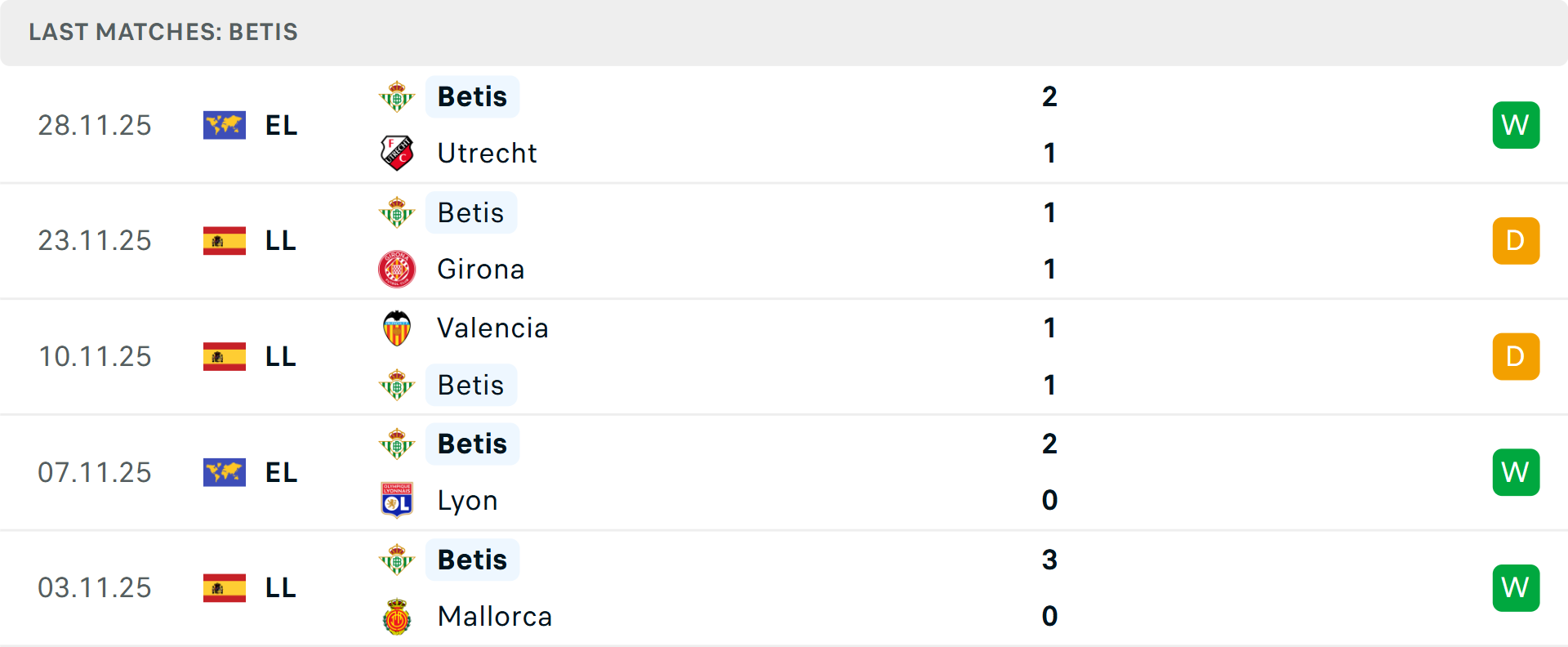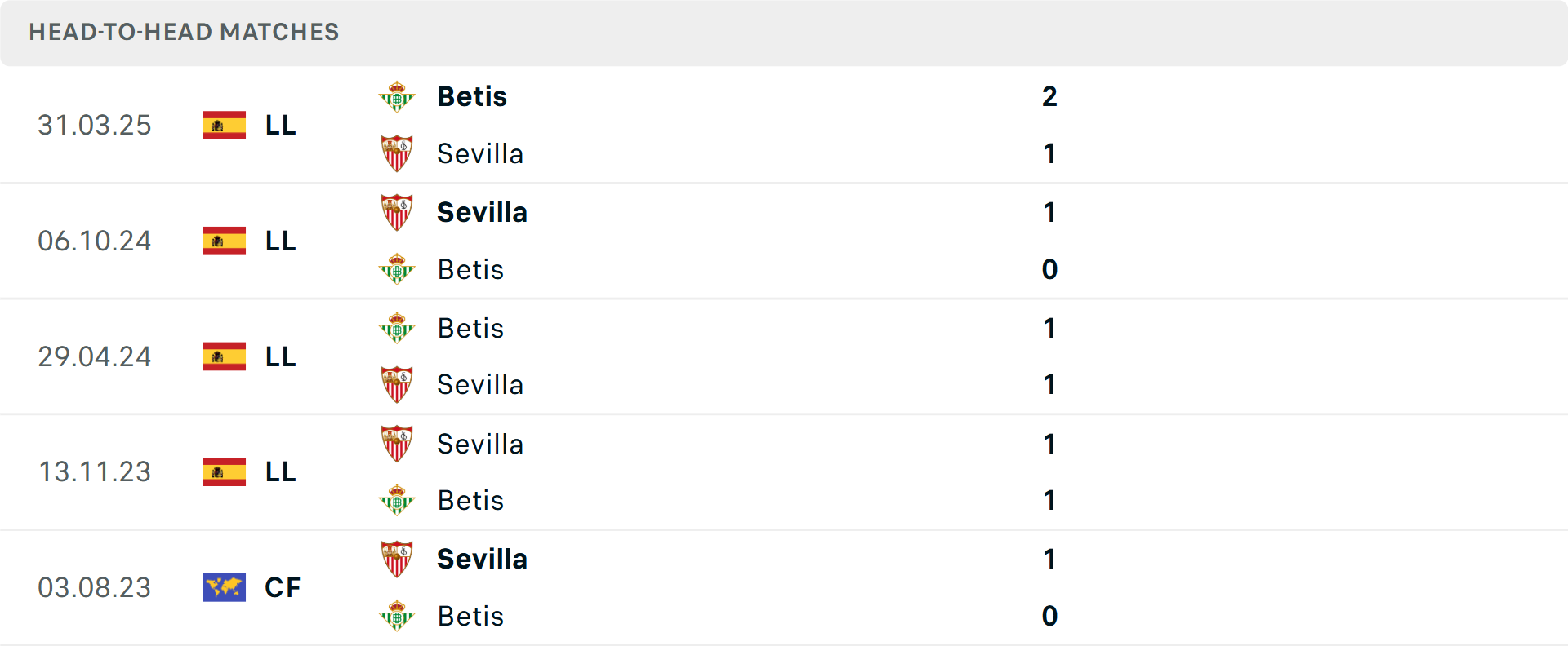 Trận Derby Seville luôn căng thẳng, nhưng lần này Real Betis chiếm ưu thế rõ rệt. Đội khách đang bay cao ở vị trí thứ năm với phong độ ổn định và vừa có chiến thắng 2-1 tại Europa League. Điểm mạnh nhất của Betis là khả năng thi đấu xa nhà, khi họ bất bại trên sân khách tại La Liga mùa này (1 thắng, 5 hòa).