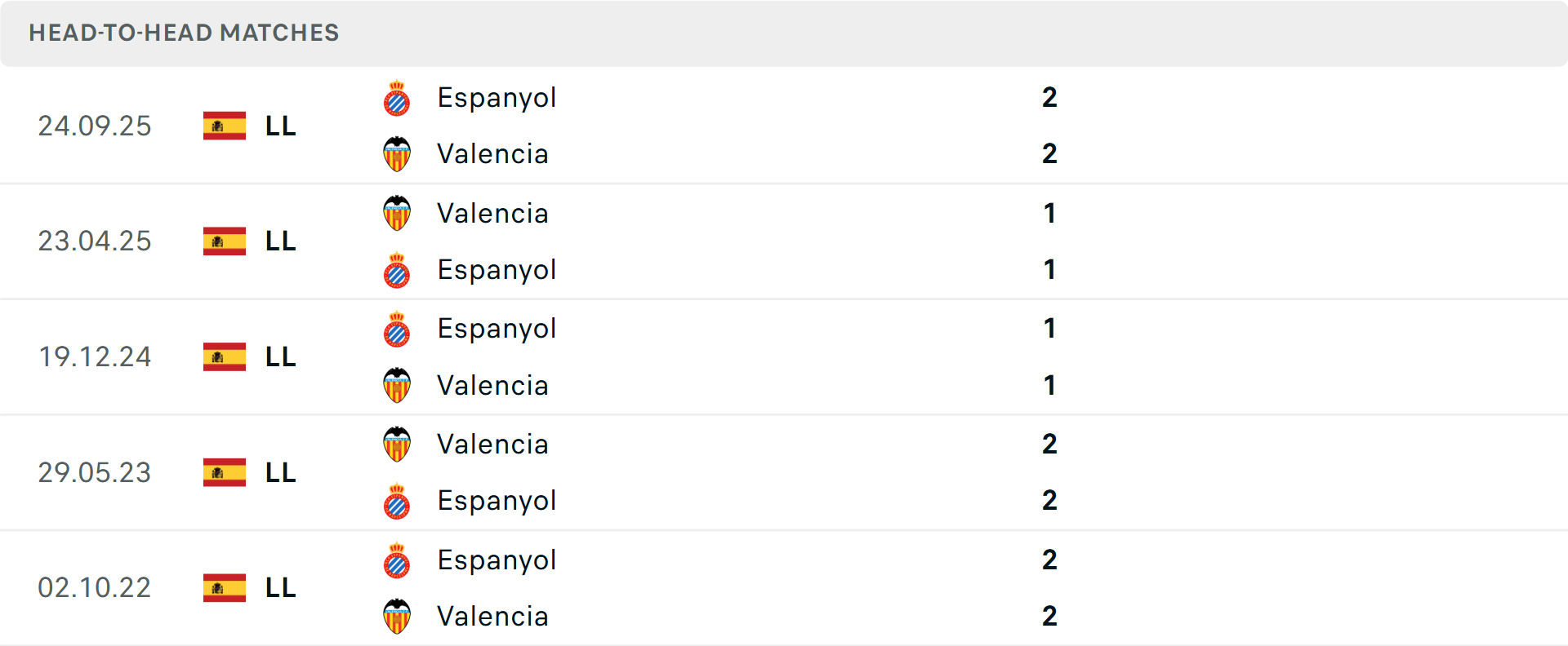Tỷ lệ trận đấu: Valencia thắng cả 2 trận mới nhất theo tỷ số châu Á. Về phần mình, Espanyol thua 2/3 trận vừa qua (hoà 1).