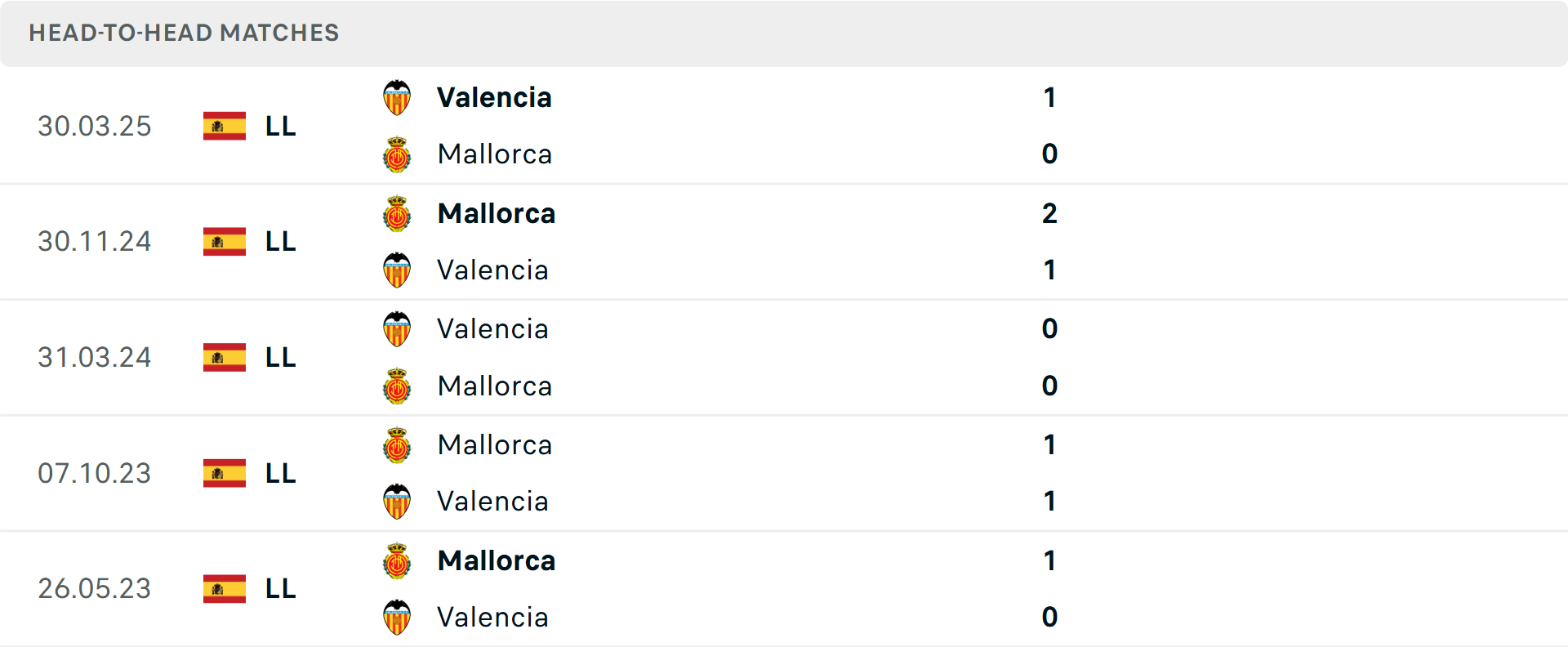 Tỷ lệ trận đấu: Valencia thắng 2 và thua 2 trong 4 trận gần đây theo tỷ số châu Á. Về phần mình, Mallorca thắng 5/7 trận vừa qua.