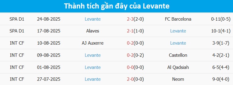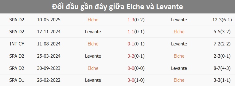 Tổng bàn thắng cả trận: Cả 4 trận gần đây của Elche đều dưới mốc tổng bàn thắng, chỉ lọt lưới tổng cộng 2 bàn. Điều tương tự cũng xảy ra ở 7/9 trận trước đó của Levante.