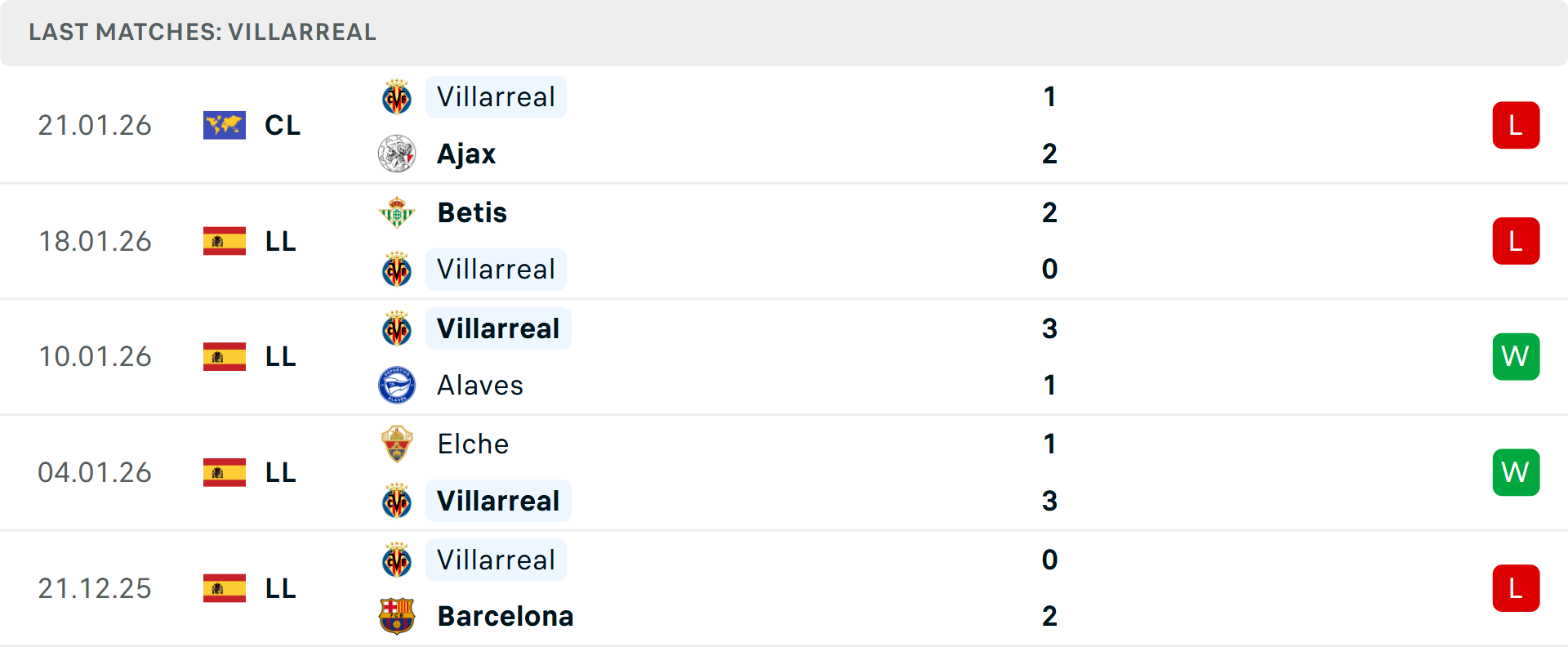 Villarreal đang có mùa giải La Liga thăng hoa khi đứng thứ 3 với 41 điểm, chỉ kém chính đối thủ 7 điểm nhưng thi đấu ít hơn một trận. Tuy nhiên, tâm lý của "Tàu ngầm vàng" đang bị ảnh hưởng nặng nề sau khi chính thức bị loại khỏi Champions League dưới tay Ajax và tổn thất lực lượng nghiêm trọng với 5 trụ cột vắng mặt.