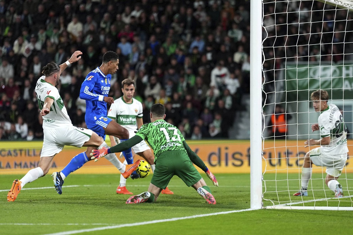 Tưởng chừng Real Madrid sẽ tận dụng đà tâm lý, nhưng Elche lại vươn lên dẫn trước. Cầu thủ vào sân thay người Alvaro Rodriguez có pha đi bóng và dứt điểm hiểm hóc nâng tỷ số lên 2-1. Nhưng một lần nữa, Real Madrid lại tìm được bàn gỡ, vẫn từ một tình huống cố định. Bóng được Trent tạt vào, Huijsen đánh đầu, Bellingham vô-lê, thủ môn Pena cản phá và Jude Bellingham đã kịp thời ghi bàn ấn định tỷ số 2-2.