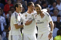 Chỉ trong 18 phút đầu tiên trên sân Bernabeu, Gareth Bale, Ronaldo và Benzema đã sớm định đoạt số phận Gijon khi thay nhau chọc thủng lưới đội khách tới 4 lần.