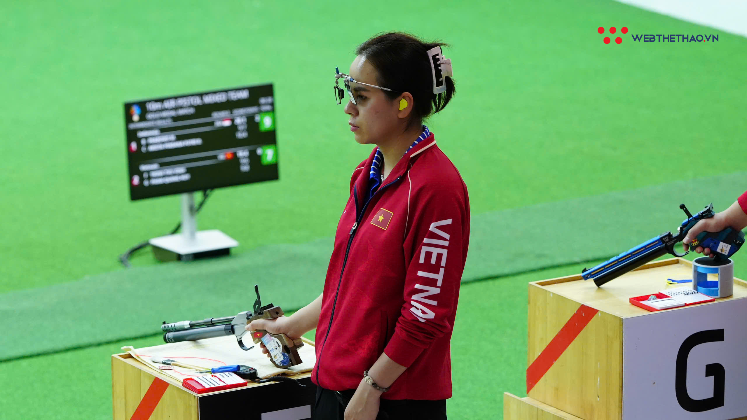 Trong ngày thi đấu đầy cảm xúc, xạ thủ Trịnh Thu Vinh một lần nữa khẳng định vị thế ngôi sao hàng đầu của bắn súng Việt Nam, giành 2 HCV cùng kỷ lục SEA Games.