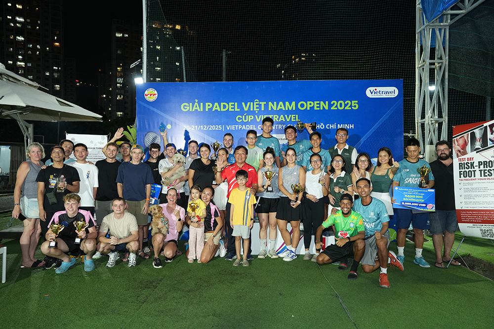 Chiều nay (21/12), tại Vietpadel Country Club, TP. Hồ Chí Minh, Lễ bế mạc Giải Padel Vietnam Open 2025 – Cúp Vietravel đã diễn ra thành công tốt đẹp, khép lại hai ngày tranh tài sôi động, hấp dẫn và đầy cảm xúc (20-21/12/2025) của gần 100 tay vợt trong nước và quốc tế.