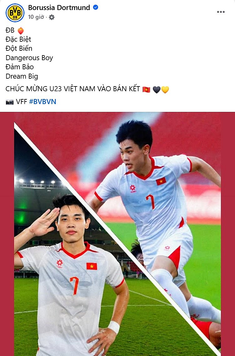 Trong khi đó, Borussia Dortmund thậm chí còn "sáng tác" một loạt lời khen kiểu chơi chữ bắt đầu bằng hai chữ "Đ" và "B", được hiểu là viết tắt từ chính tên của Đình Bắc.