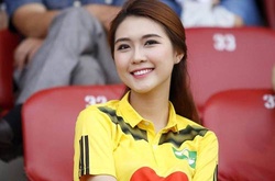 Huỳnh Anh cùng cô bạn xinh như hoa hậu xuất hiện ở sân Hòa Xuân để cổ vũ Quang Hải.