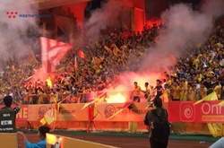 HLV Nguyễn Văn Dũng nghi ngờ CĐV đội bóng khác trà trộn vào khu vực của CĐV Nam Định để đốt pháo sáng tại sân Hàng Đẫy.