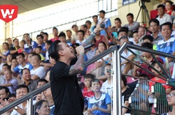 Sau trận đấu giữa CLB TP.HCM và Quảng Nam, Quyền chủ tịch Lê Công Vinh trở thành tâm điểm của khán giả và “mắc kẹt” giữa hàng trăm CĐV vây quanh.