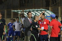 Bức xúc với những quyết định của trọng tài Võ Minh Trí, bộ đôi Stevens-Fagan của Hải Phòng đã "vái sống" vị "Vua áo đen" này ngay trên sân Cẩm Phả,Quảng Ninh.