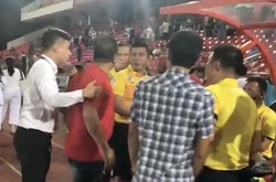 Đang cặm cụi kiểm tra biên bản trận đấu giữa Hải Phòng vs Bình Định thuộc vòng 8 V.League 2022, trọng tài Hoàng Ngọc Hà bất ngờ bị một người đàn ông áo đỏ tấn công, nhổ nước bọt vào mặt.