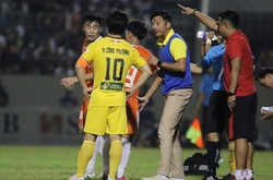 HLV Hoàng Văn Phúc cho rằng trọng tài Ngô Duy Lân đã nặng tay khi rút thẻ đỏ cho Đức Huy sau tình huống vung tay vào mặt đối thủ.