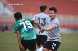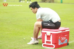 Sau phần khởi động nhẹ, tiền vệ Tuấn Anh gặp vấn đề ở chân khiến anh không thể tiếp tục tập luyện cùng HAGL ở buổi tập trước trận gặp Viettel.