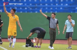 HLV Chu Đình Nghiêm tỏ ra không hài lòng khi mặt sân ướt sũng ảnh hưởng đến lối chơi của Hà Nội trong trận khai màn V.League 2021.