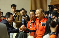 Các thành viên tuyển Việt Nam ăn mừng chức vô địch ASEAN Cup với các CĐV, vợ con Phạm Xuân Mạnh bật khóc vì sung sướng, Đỗ Duy Mạnh ăn mừng cùng bà xã và con