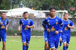 Thầy trò HLV Trương Việt Hoàng có buổi tập làm quen sân Thống Nhất chiều 13/10. Ngay trong buổi tập, tiền vệ Hoàng "bò" và các đồng đội thể hiện quyết tâm giành chiến thắng trước TP.HCM.