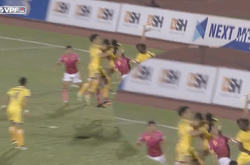 Sau khi Victor dứt điểm thành công để gỡ hòa 2-2 cho đội khách, Đình Luật đã có một hành động khá kỳ quặc khi... sút liên tiếp 3 lần vào lưới đối phương.