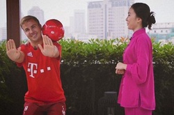 Dù chưa thạo ‘nghệ’ thế nhưng Alaba cũng mạnh dạn chơi một đoạn nhạc trong buổi gặp nghệ sĩ piano – Lang Lang tại Trung Quốc.
