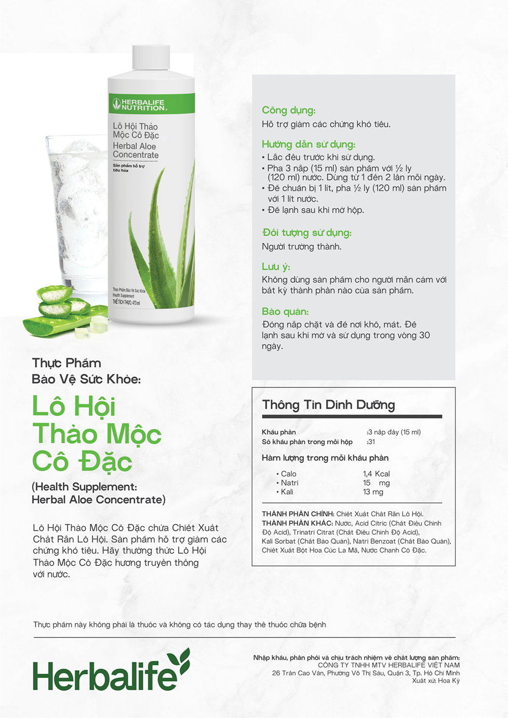 Herbalife (có cổ phiếu được niêm yết trên Sàn Giao dịch Chứng khoán New York) với mục tiêu trở thành một trong những công ty, cộng đồng và nền tảng toàn cầu hàng đầu về sức khỏe và thể chất, đã và đang thay đổi cuộc sống của nhiều người với các sản phẩm dinh dưỡng tuyệt vời và cơ hội kinh doanh cho các Thành Viên Độc Lập của Công ty kể từ năm 1980.