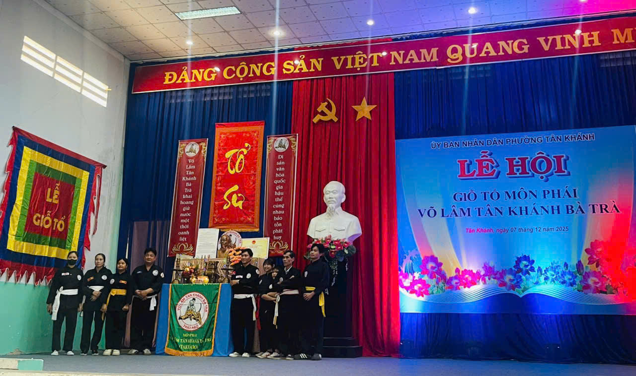 Sáng 7/12/2025, Lễ Giỗ Tổ môn phái Võ Lâm Tân Khánh Bà Trà đã diễn ra trang trọng tại phường Tân Khánh, Bình Dương, thu hút sự quan tâm lớn của cộng đồng.